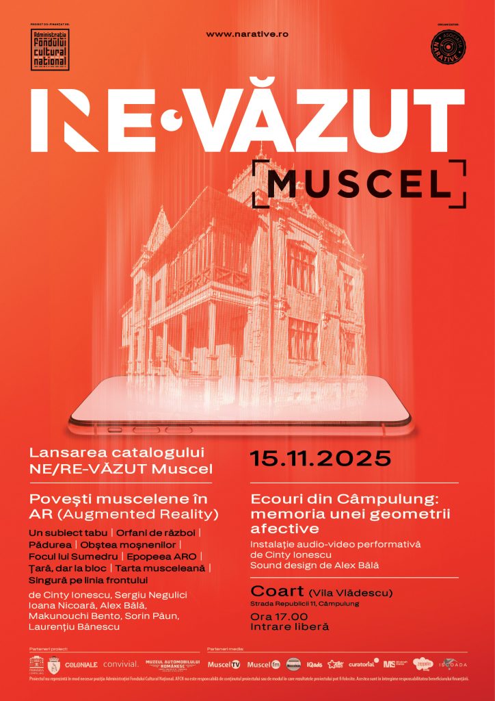 NE/RE-VĂZUT: Muscel is a large-scale cultural intervention and multimedia art project initiated by Asociația Narative and co-funded by the National Cultural Fund Administration (AFCN). Developed between July and November 2025, the project transforms the town of Câmpulung into an open platform for artistic research, augmented reality, and community engagement.